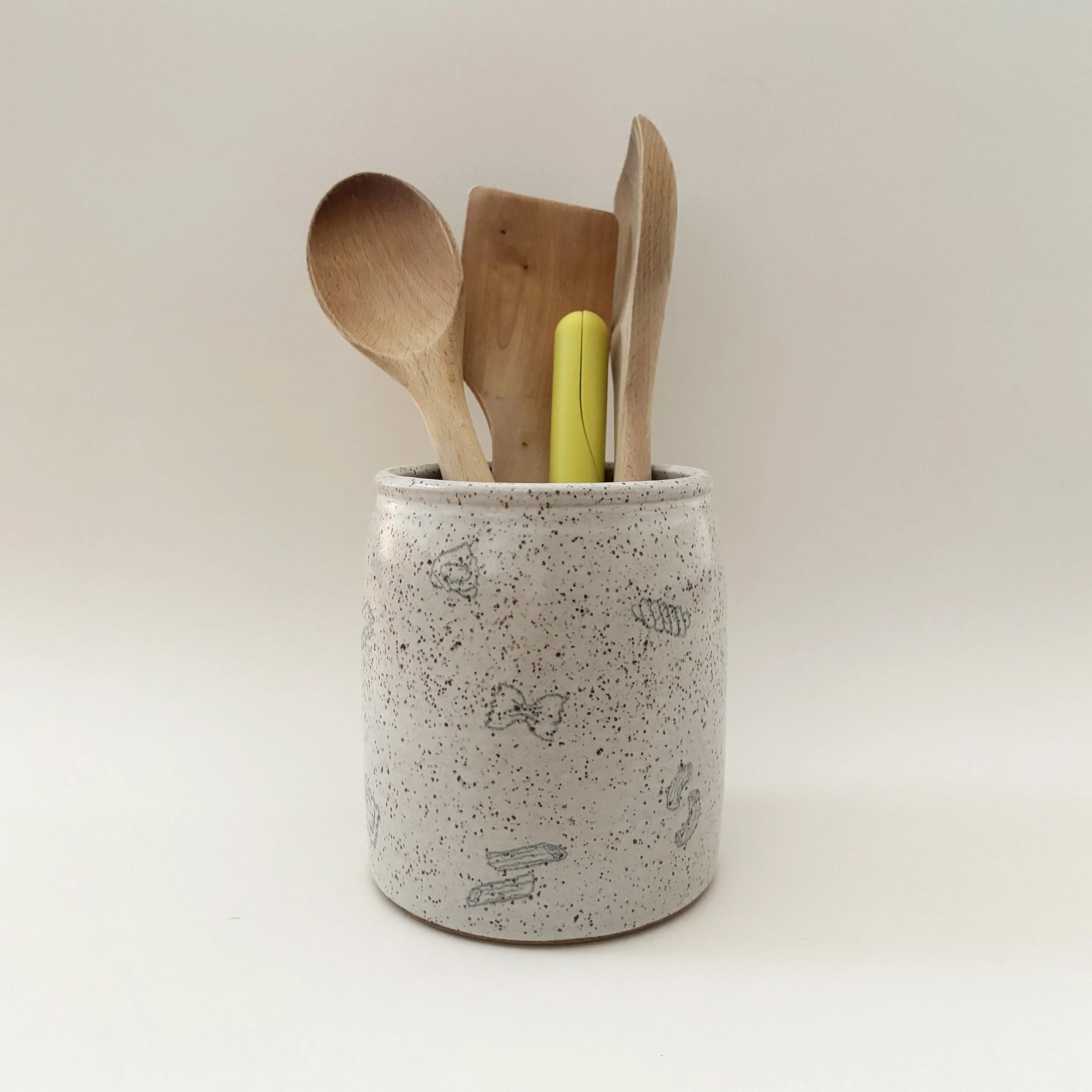 Second Sundays › Pasta Utensil Crock Image 1 of 4 Image 2 of 4 Image 3 of 4 Image 4 of 4 Pasta Utensil Crock Sale Price: $75.00 Original Price: $98.00 Sold Out 5-3/4” tallDiscounted due to faded illustration. Sold Out Added! 5-3/4” tallDiscounted due to faded illustration. Reviews Reviewer Name Review Date Star Rating Description Posted on Etsy Product Show More